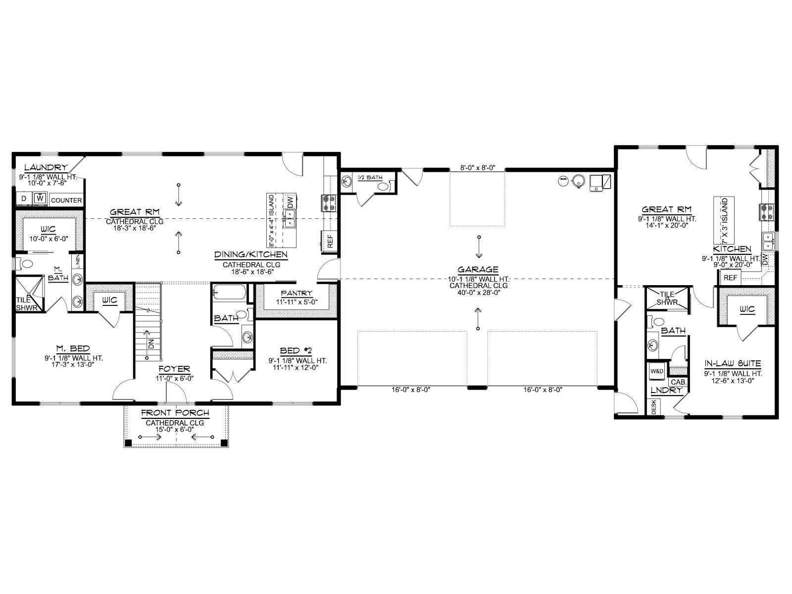Main Area of the first floor consists of 1,735 heated SF, while the In-Law portion of the first floor adds 971 heated SF.