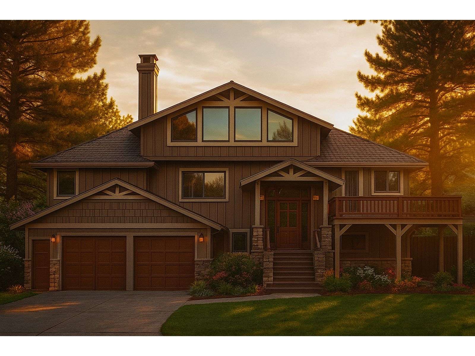Large decks, loads of windows and a finished lower level make this Craftsman style house plan well suited for a waterfront lot. The exterior features a multi-material façade with true Northwestern flair. The main level holds the central gathering spaces where windows line the back wall filling the vaulted living and dining rooms with natural light. Built-ins surround the toasty fireplace. The kitchen connects with the dining room and enjoys immediate access to the front and rear decks making grilling and summertime barbecues a snap. A vaulted ceiling tops the master suite featuring private deck access and a deluxe bath outfitted with a soaking tub and double bowl vanity. Bedroom 2 is nearby and accesses a full bath. Stairs lead to the second floor loft where ample storage space is available to satisfy a variety of needs. This peaceful area is perfect for an office, hobby room or exercise area and delights in fantastic rear views as it gazes down on the living areas below. Now take a look at the finished walkout basement. A second master suite offers all the comforts of home and could easily serve as a guest retreat. Two more family bedrooms share a hall bath. The family room boasts sunny windows and opens to the patio. The laundry room and 2-car, drive-under garage complete this luxury two-story house plan.