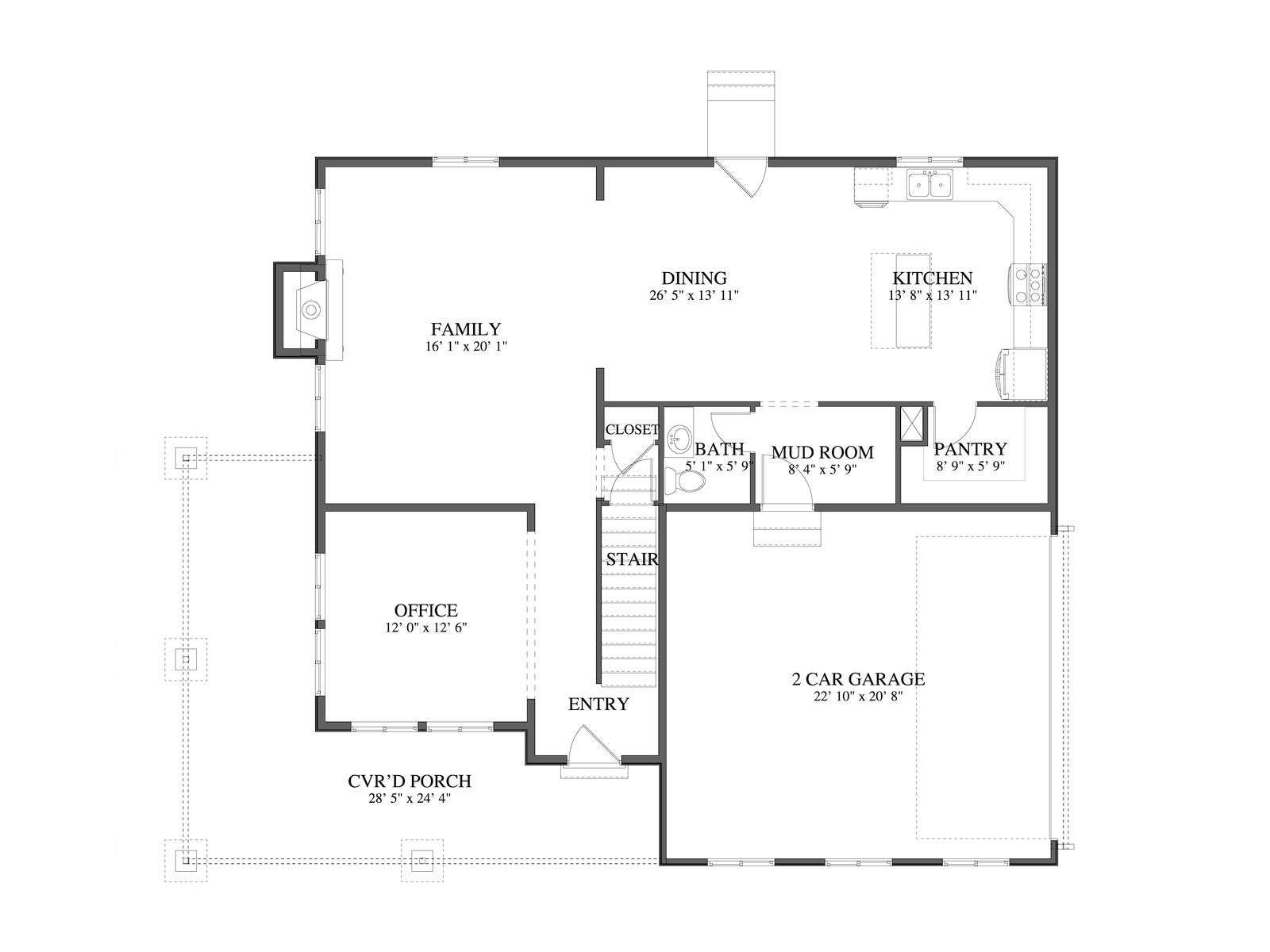 The listed overall width includes the porch