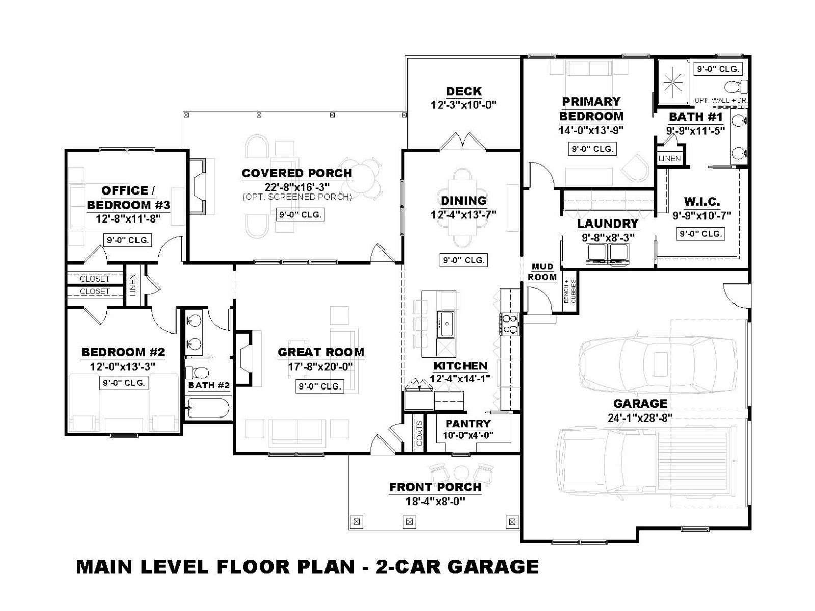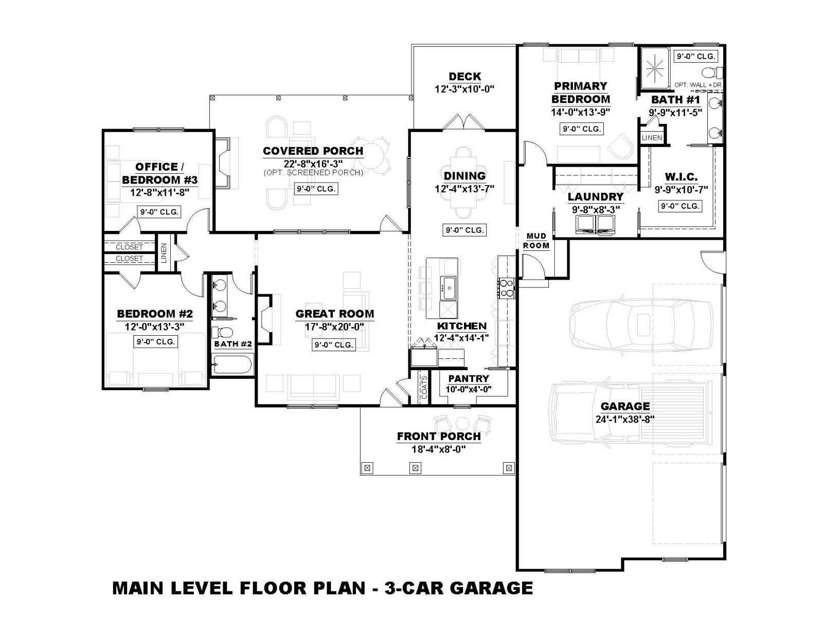 Plan designed for 2-Car side entry garage. Additional $195 charge for garage change request.