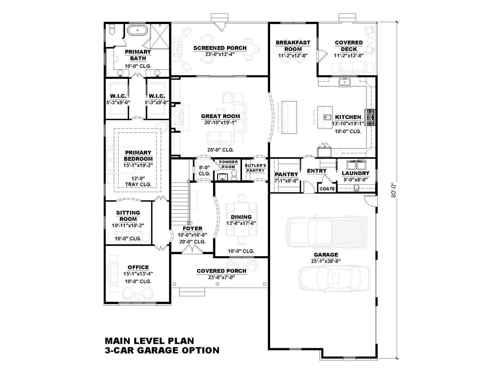 Plan designed for 2-Car side entry garage. Additional $195 charge for garage change request.